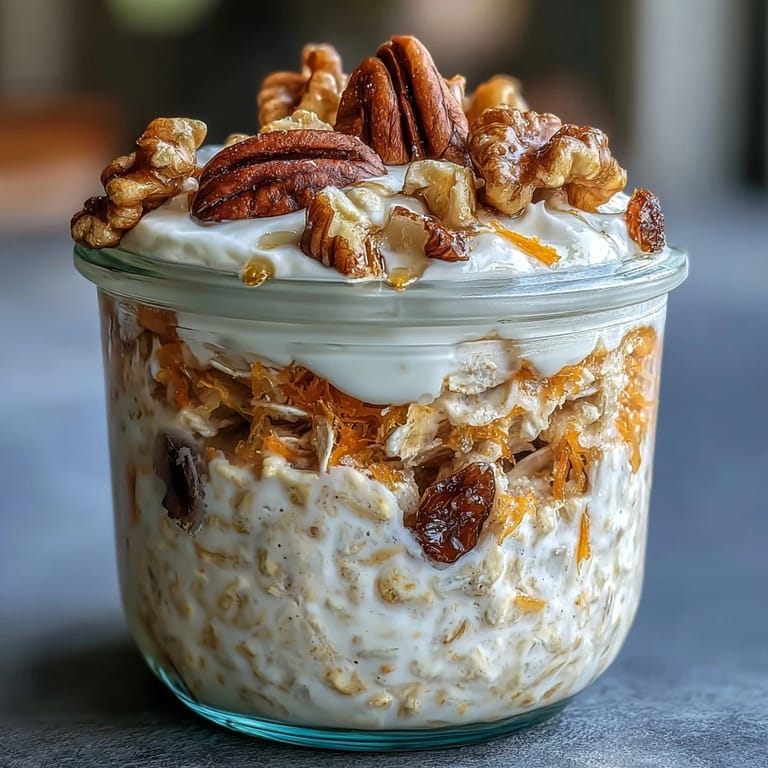 Save The sound of my grater against a crisp carrot has become something of a gentle morning ritual, especially on the days I crave the comforts of carrot cake but also need to start my day sensibly. The first time I made these overnight oats, I was mostly trying to use up the handful of odds and ends in my fridge, not expecting much. There is something quietly thrilling about opening the fridge to a sweet, spiced jar after a long night’s rest. As I stirred in the cinnamon and nutmeg, the kitchen suddenly smelled as if someone had snuck in and baked a cake in the wee hours. It’s part breakfast, part dessert, but in that way that feels good for you from the first bite.
