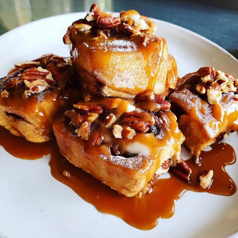 Save This recipe brings that classic cinnamon roll flavor a step further by layering sweet, spiced dough pieces into a bundt pan, then baking them in a luscious caramel sauce. The result is a golden, irresistible dessert that’s both elegant and inviting, ideal for weekend breakfasts or festive gatherings.