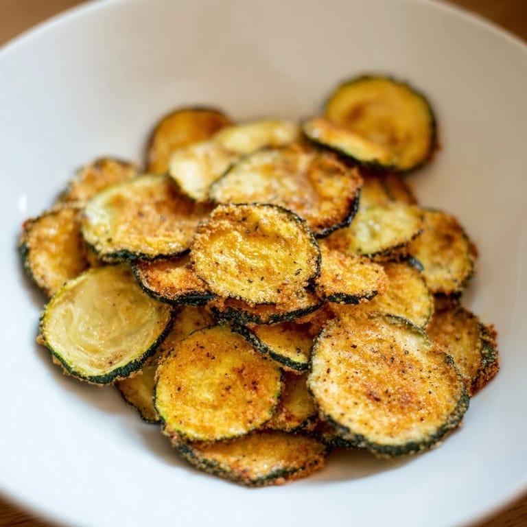 Save One lazy summer afternoon, I watched my neighbor pull a tray of golden, impossibly crispy zucchini chips from her oven, and the whole kitchen smelled like toasted garden vegetables. She caught me staring and handed me one—it shattered between my teeth like the best potato chip I'd ever had, except it was somehow lighter, fresher. I asked for the recipe on the spot, convinced it must be complicated, but she just laughed and showed me how a low oven and patience were the only real secrets.