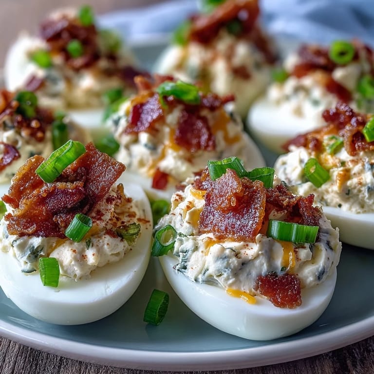 Save The smell of sizzling bacon always makes me pause mid-chop, and it was that delicious aroma that first inspired me to add a jalapeño popper twist to deviled eggs. One sunny afternoon, I found myself craving something creamy, spicy, and bite-sized—three words that pretty much sum up these little beauties. What started as an experimental batch quickly turned into a staple for game days and spontaneous gatherings at our kitchen counter. I never imagined cream cheese would become the secret hero in deviled eggs, but here we are. The fusion of spice and richness just seemed to click the moment I took a taste test straight from the mixing bowl.