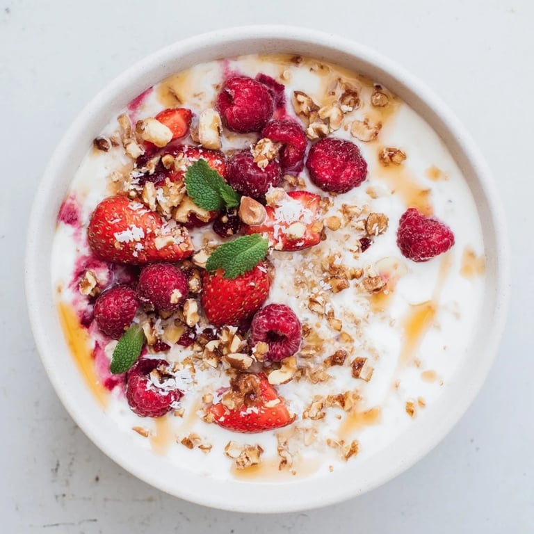 - Toppings: 1 cup (150 g) mixed fresh berries (strawberries, blueberries, raspberries), 2 tablespoons honey (plus extra for drizzling), 2 tablespoons chopped toasted nuts (almonds, pecans or walnuts optional), 2 tablespoons unsweetened shredded coconut (optional), fresh mint leaves (for garnish optional)