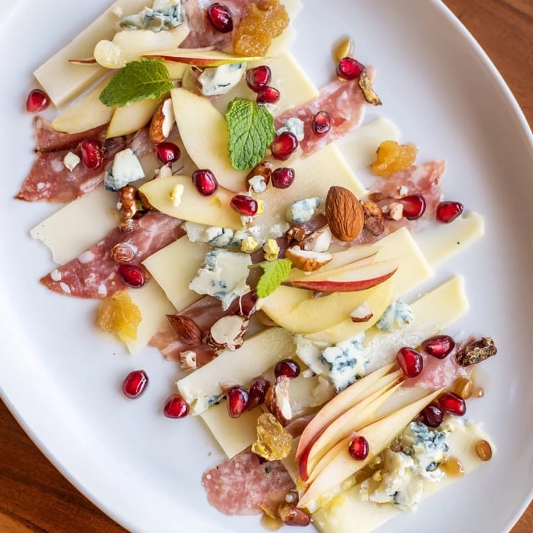 Save I'll never forget the first time I arranged a cheese board that made my guests actually pause before eating it. It was at a dinner party where I wanted to impress, and instead of my usual haphazard scatter of cheeses and crackers, I decided to create something that felt like edible art. That's when I discovered the magic of the Pomegranate Jewel Cascade—a linear arrangement where jewel-like pomegranate seeds catch the light and guide your eye in one flowing line of color and flavor. Now, whenever I set this board down, people reach for their cameras before they reach for the cheese.
